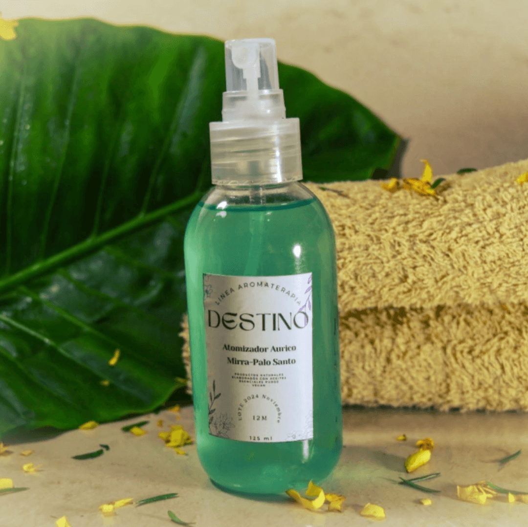 El atomizador áurico de Mirra y Palo Santo es una forma práctica y eficaz de integrar la sabiduría ancestral de estas poderosas esencias en tu rutina diaria para mantener un equilibrio energético óptimo.